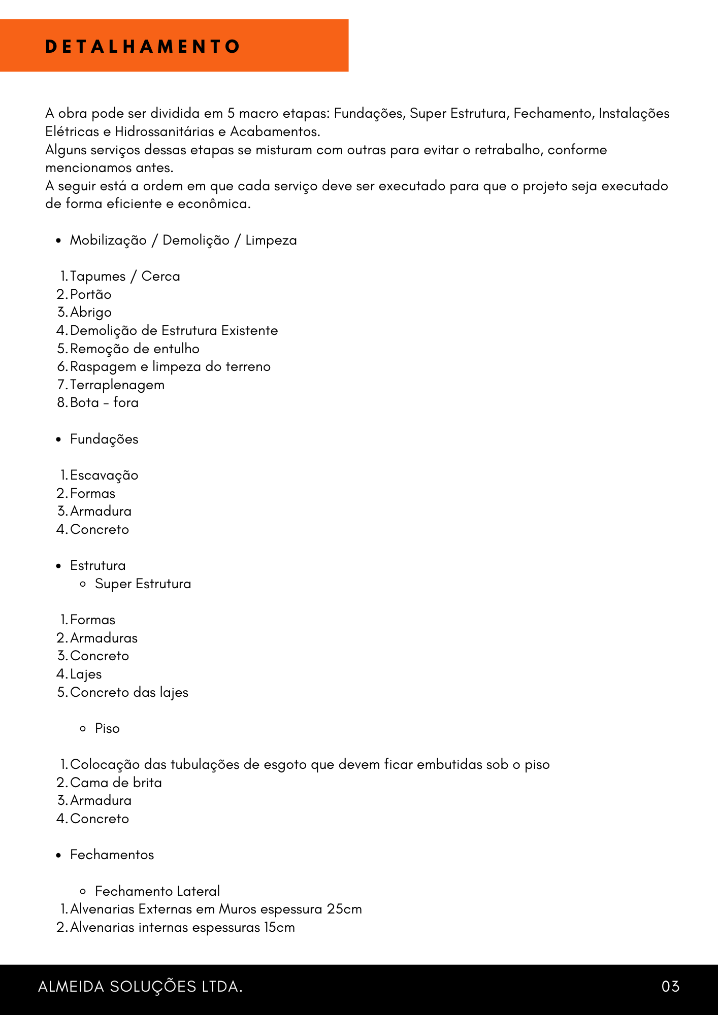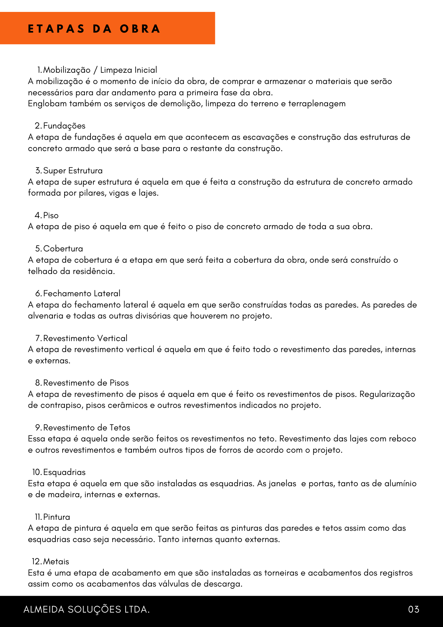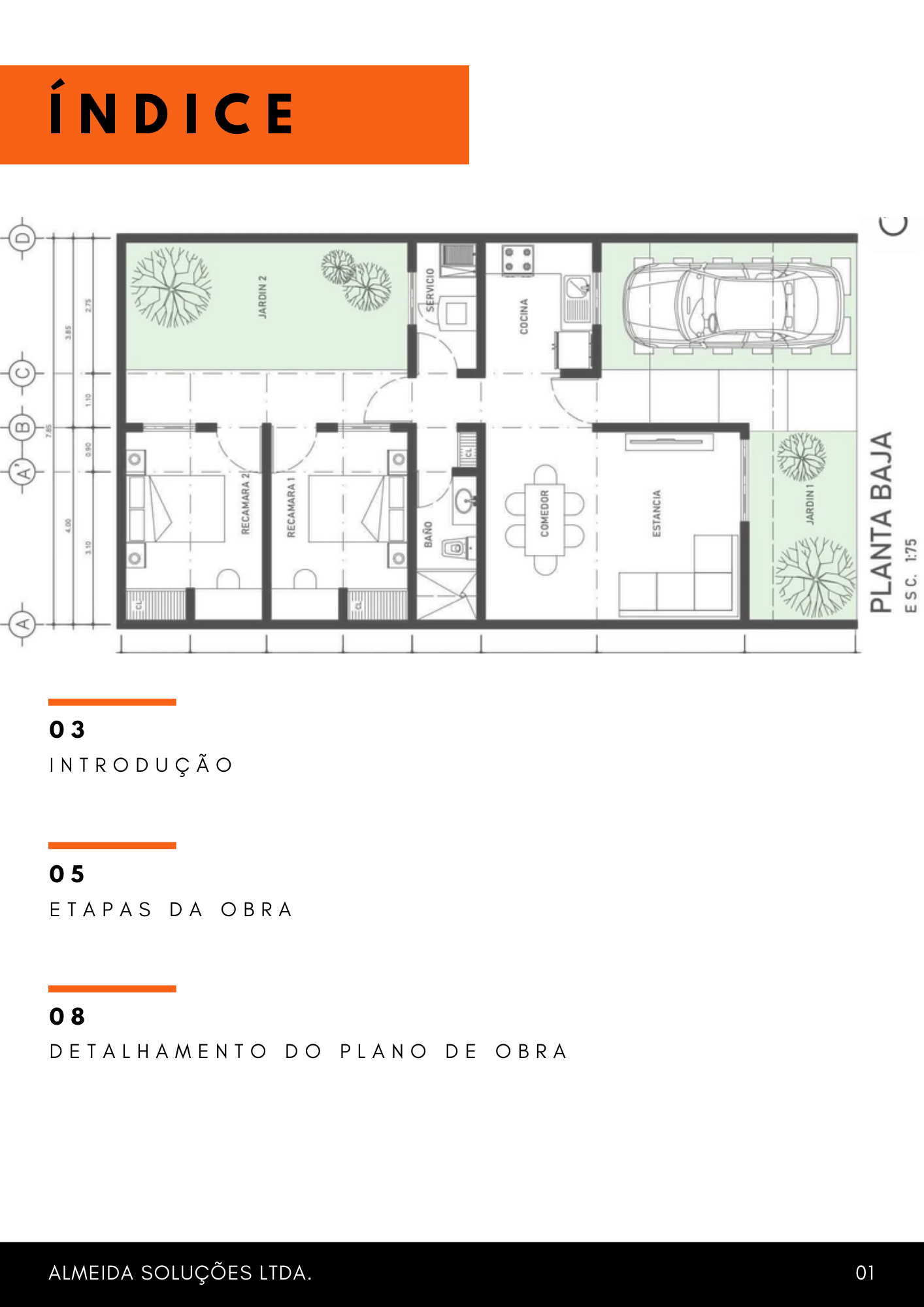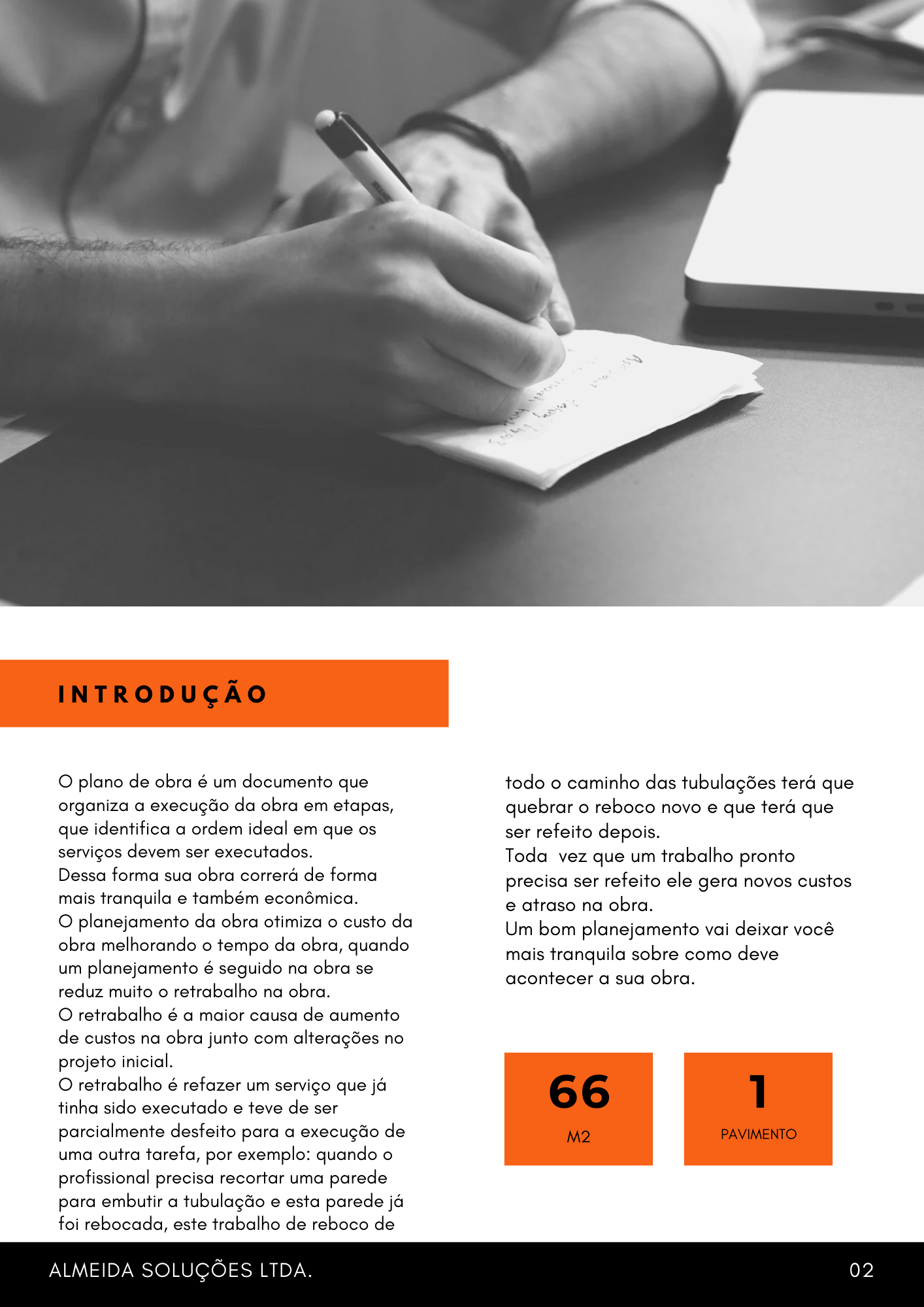 Esta é uma amostra de um Planejamento de Obra. Uma amostra de como é entregue o nosso planejamento, para que você tenha uma ideia de como seria receber este serviço. O Planejamento da Obra será tanto mais detalhado quanto maior o detalhamento do seu projeto. Lembrando que seu Planejamento de Obra será feito por profissional habilitado, então caso informações importantes estejam faltando no seu projeto isso será parte das observações levantadas pelo profissional.